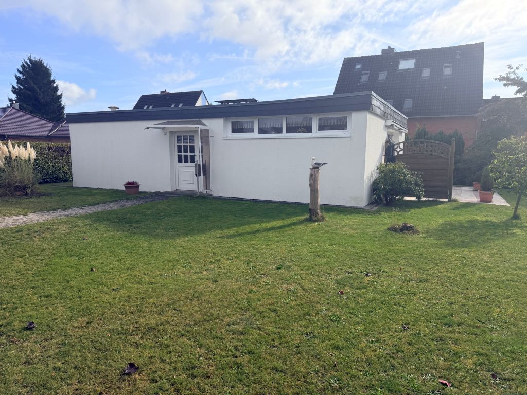 Die Wohnfläche des ca. 88 m² großen Bungalows verteilt sich auf ein großes Wohnzimmer mit Essbereich, eine große separate Küche, drei Schlafzimmer sowie auf einen Flur, ein Badezimmer und ein Gäste-WC.